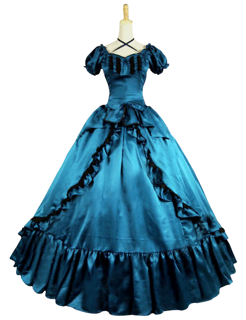 Civil War Lolita Sweet Spaghetti Strap Halter Puff Short Sleeves Ruffles Lace Ball Gown Dress